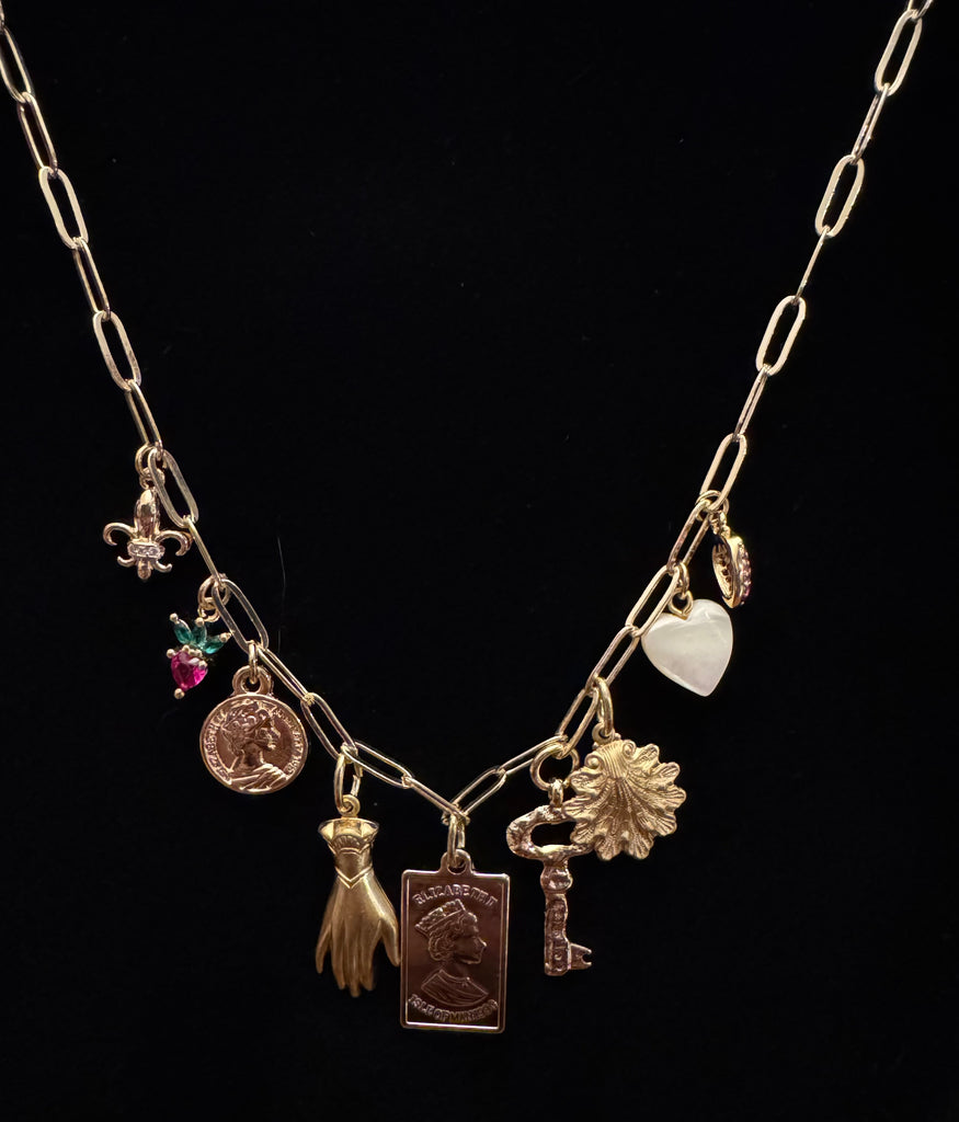 This piece blends nostalgic thrifted charms with modern trends—making this necklace a wearable time capsule of style. Yours will never exist twice.
